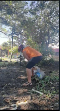 Encontramos unos recipientes de plástico cargados de piedras que se puede usar como peso para hacer swing, están pesados calculo 16 kilogramos.